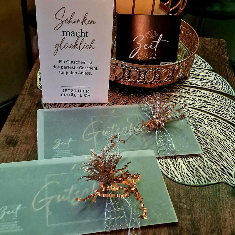 Egal ob für einen Geburtstag, das Weihnachtsfest oder einfach als kleine Anerkennung – selbstverständlich kannst Du bei mir auch Gutscheine für Wohlfühlzeit erwerben.